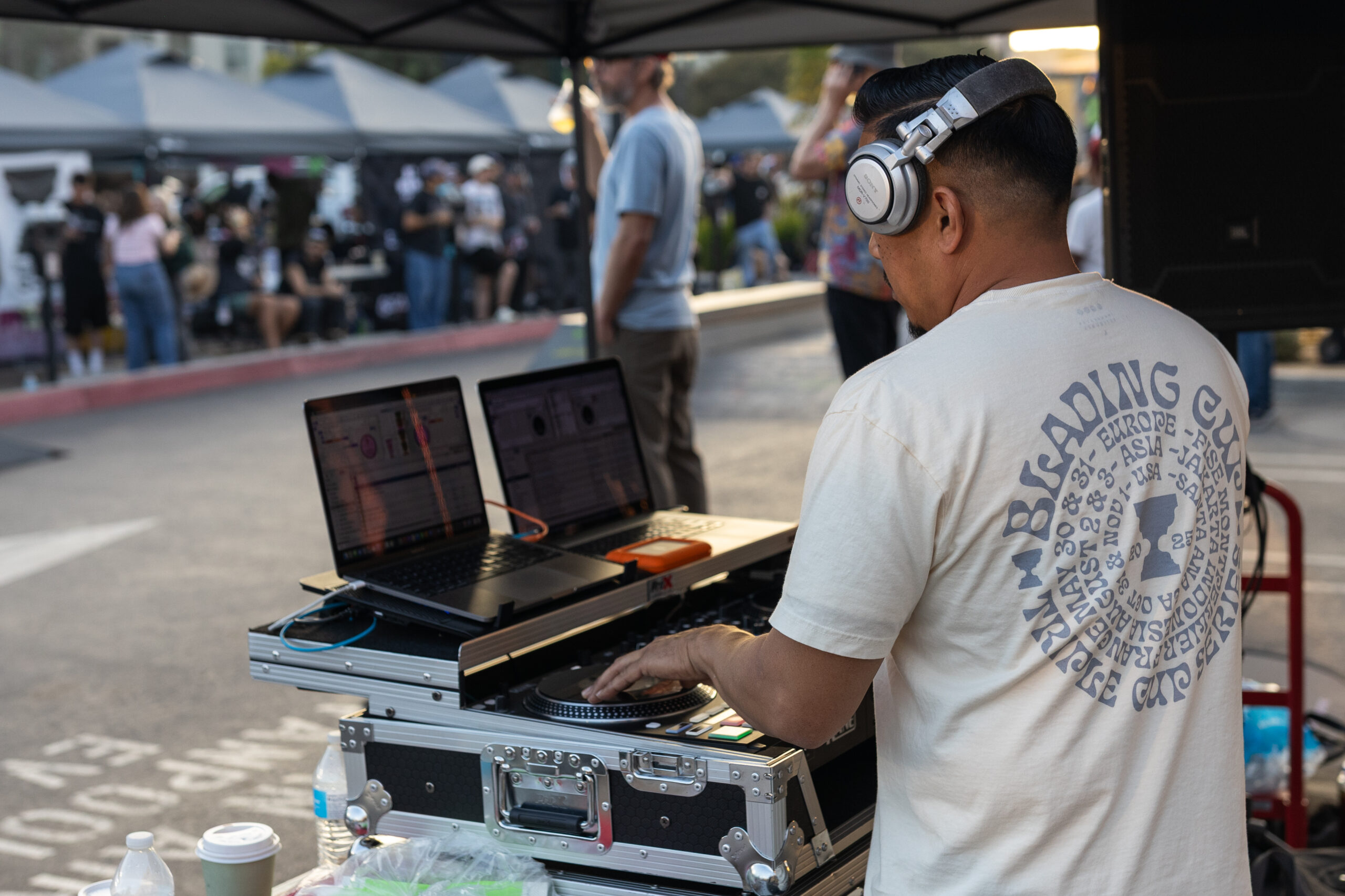 Although the competition was fierce, what seemed to be more important was the community surrounding it. Off to the side of the course, tents and booths were lined up as people sold and traded blading-related products and hung out while taking in the skating culture.