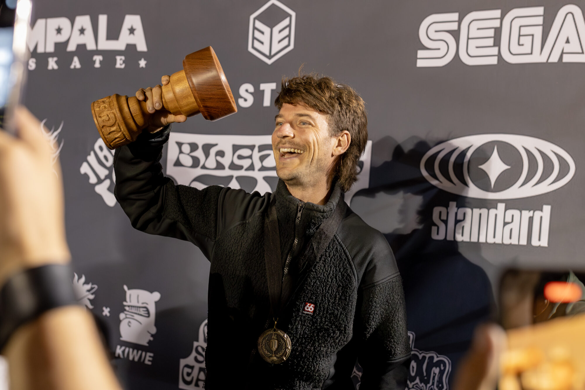 Under the warm artificial light, David Sizemore was hailed as the champion of the pro division and was handed a wooden trophy and medal before being lifted by friends and fans.