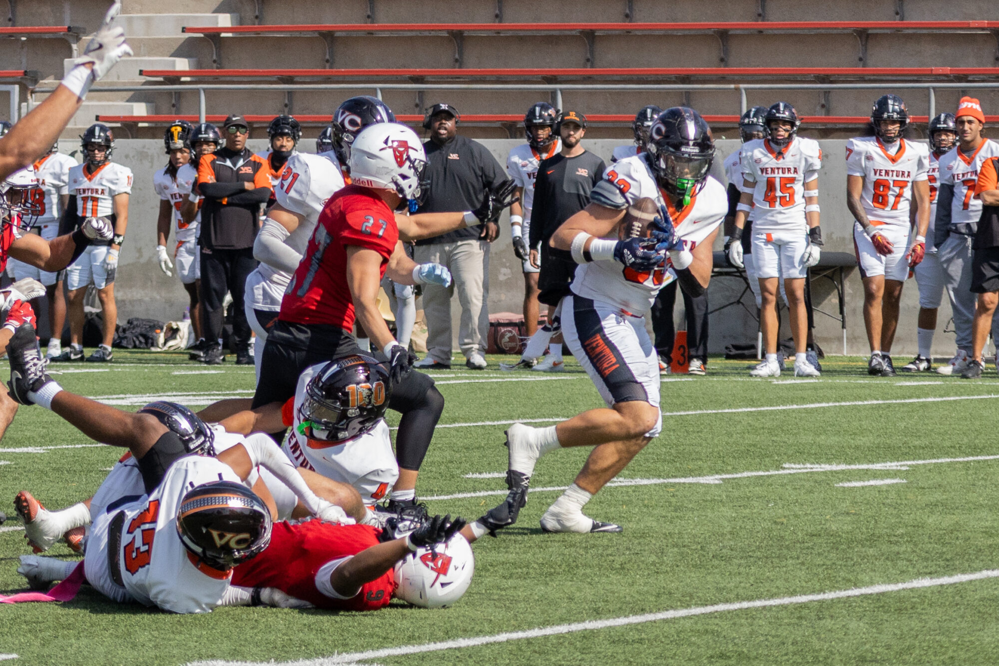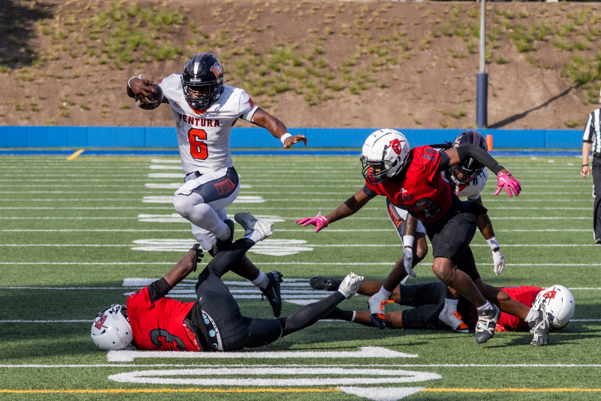 Ventura held the ground dominance they displayed on the first play of the game, rushing for 246 total yards, with touchdowns from three different players, and maintaining a 7.1 yards per rush average.