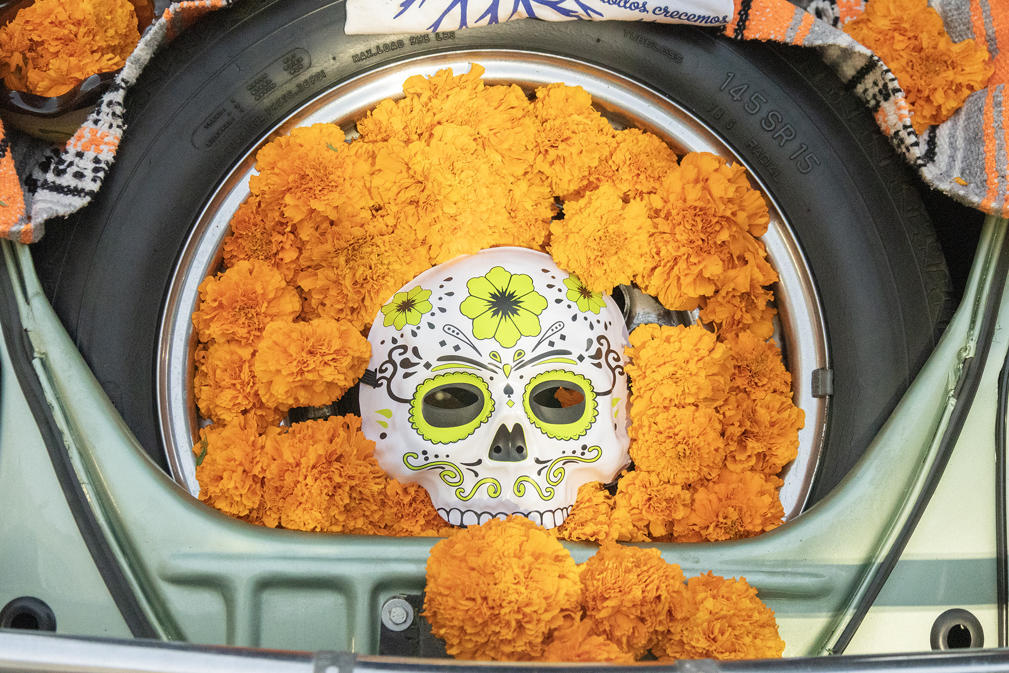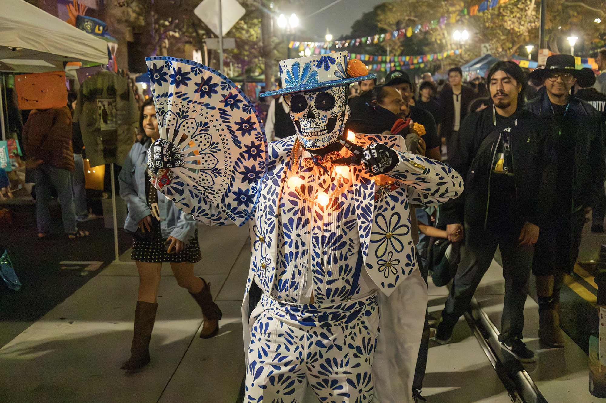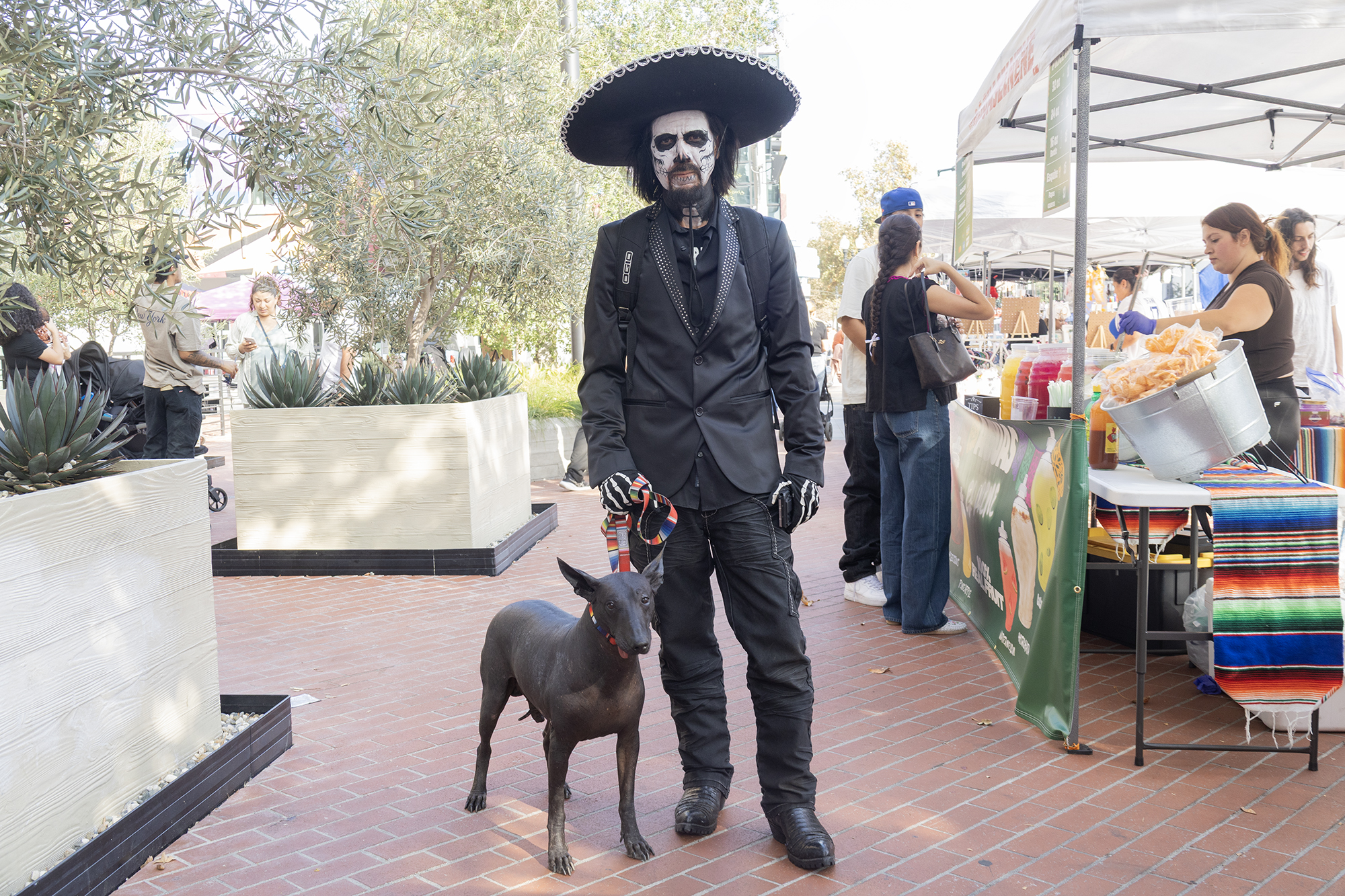 Several people at the event were seen with Xoloitzcuintles, a breed of hairless dogs from Mexico. Photo by Geovanni Esparza / el DonSome altars were made by people from other Latin American countries that have their own version of Dia de los Muertos. Photo by Geovanni Esparza / el DonPeople decorated classic cars and used them as an altar. Photo by Geovanni Esparza / el DonAlexis is from Upland, and she celebrated Dia de los Muertos in Santa Ana for the first time. Photo by Geovanni Esparza / el DonFavorite snacks and drinks are left out on the altar to honor the departed, the belief is that when their spirit returns they will have something to eat and drink. Photo by Geovanni Esparza / el DonAltars had photos, candles and other meaningful symbols to honor the departed. Photo by Evelyn Cruz / el DonSisters Karla Navarro and Tanya Navarro have been doing an altar for those who have died in ICE detention centers for seven years. The names on the banner are all the deaths that were reported in ICE detention facilities since 2016. Photo by Geovanni Esparza / el DonDozens of people dressed up and painted their faces and took photos with people walking down the street. Photo by Evelyn Cruz / el DonPan de muerto is a staple for Dia de los Muertos and altars. Photo by Geovanni Esparza / el DonOn Fourth Street there were two stages where performers played music and people danced. Photo by Geovanni Esparza / el DonAn altar dedicated to those who were killed in Palestine. Photo by Geovanni Esparza / el DonSAC illustration students honored Jordan Block, a ceramics student who died last year. Photo by Geovanni Esparza / el DonJaime (pictured above) was born in Mexico and lives in Lake Forest. He comes to the Dia De los Muertos event because he believes it is a very important holiday because you get to honor your family members who have died. Photo by Geovanni Esparza / el Don